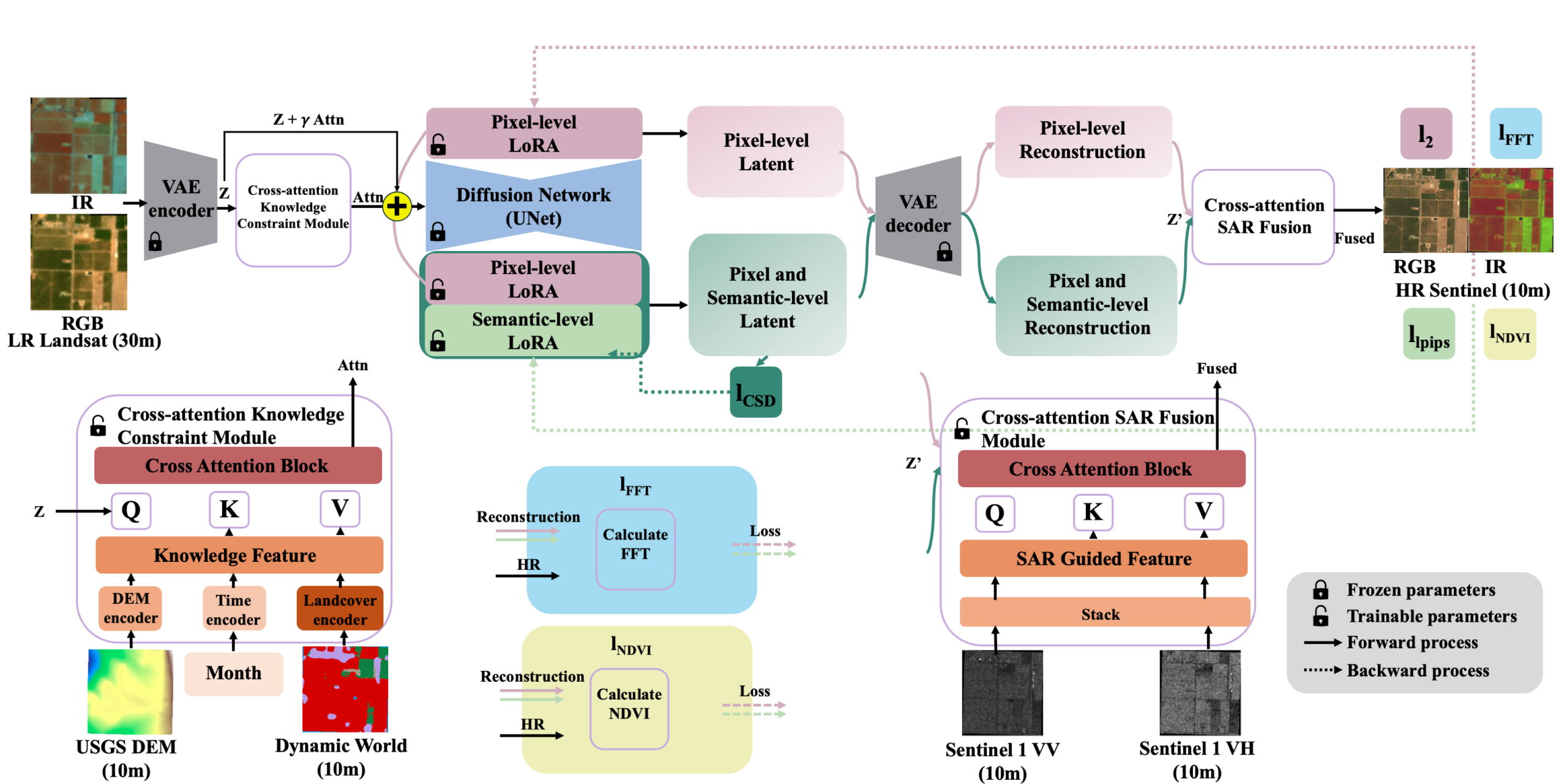 Yang S., Sui T. and Huang Q., 2025. GeoAwareDiffSR: geospatial-aware remote sensing super resolution with diffusion priors and multi-modal constraints for crop mapping. GIScience & Remote Sensing, 62(1), p.2597564. Full Paper